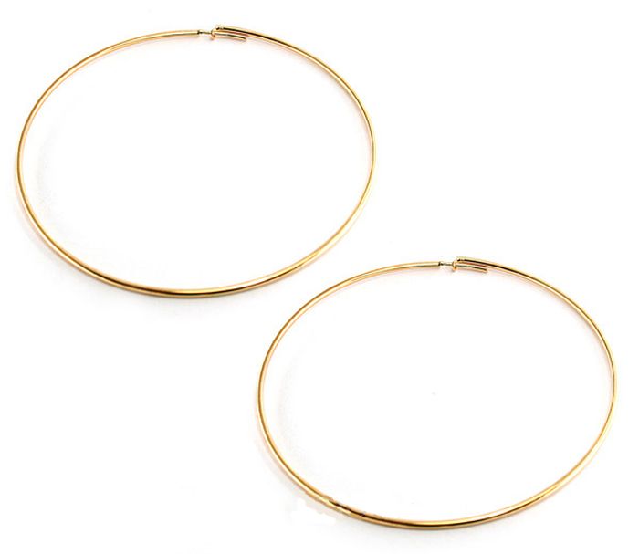 Cercei, placati cu aur de 18 k, 2 microni, productie Brazilia, latime 0.2 cm , diametru 5.7 cm