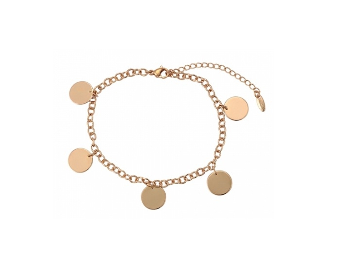 Bratara placata cu aur de 18 k, cu pandantive banut de 1 cm, lungime 18 cm - 24 cm , latime 0,3 cm