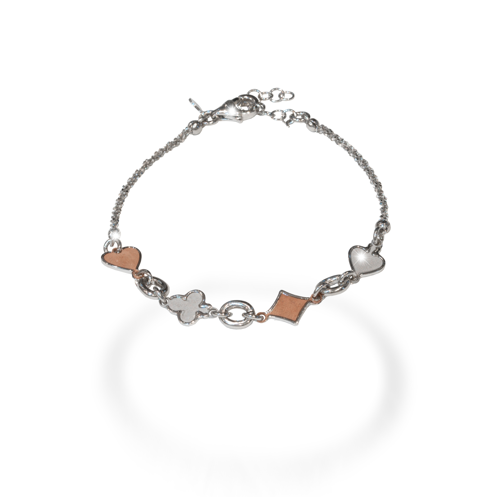 Bratara argint 925, rodiata , design italian - colectia Milano , model cu inimioare 7737O463