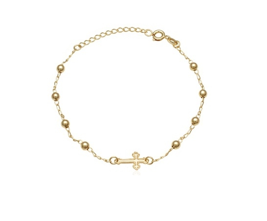 Bratara placata cu aur de 18 k , 2microni, productie Brazilia, lungime 17 cm + extensie 3 cm, motiv religios