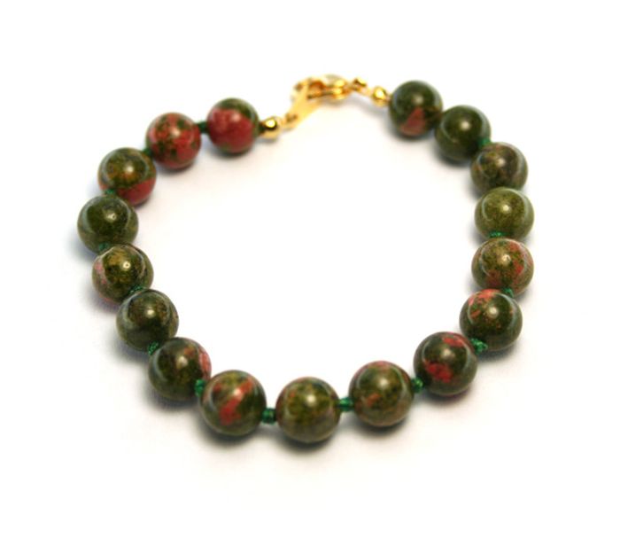 Bratara placata cu aur de 18 k , 2 microni. Pietre: semipretioase unachite cu diametrul de 0, 8 cm, lungime 19 cm