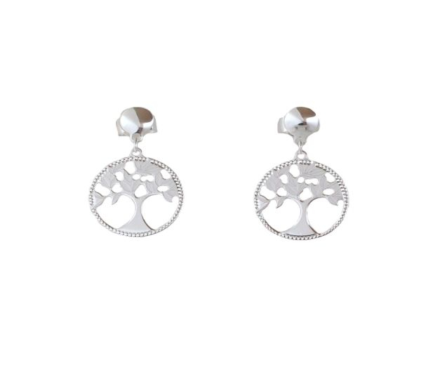 Cercei argint 925, rodiat, design italian, " pomul vietiiÔÇØ combinatie de argint lucios si mat, inchidere cu surub. Greutate 3 g, lungime 0.5 + 1.6 cm