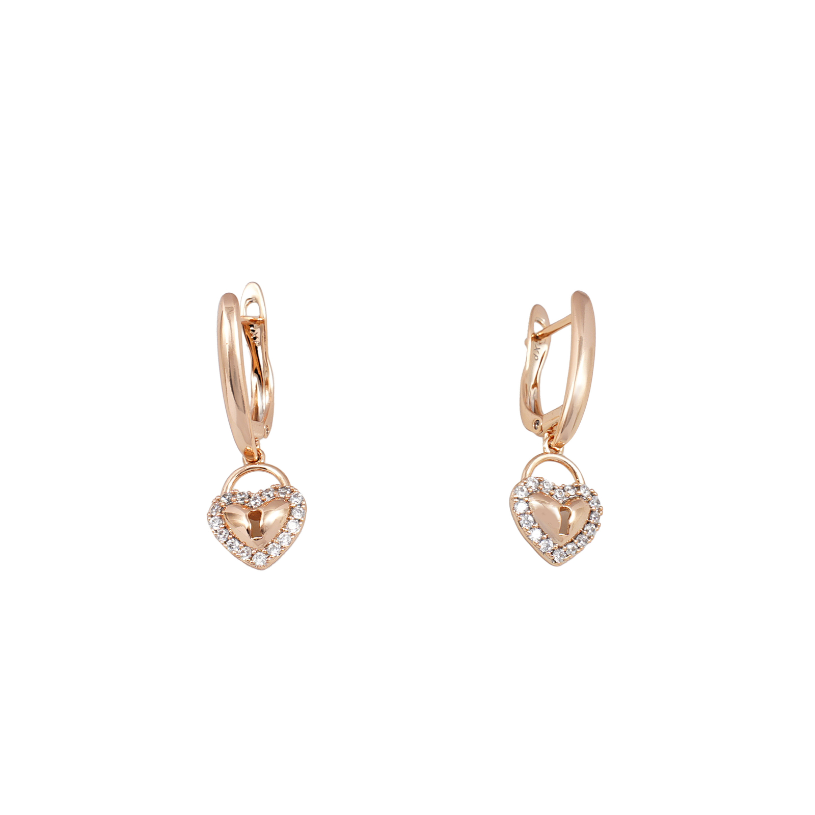 Cercei placati cu aur 18 K, inchidere clasica , model inimioara cu lacat