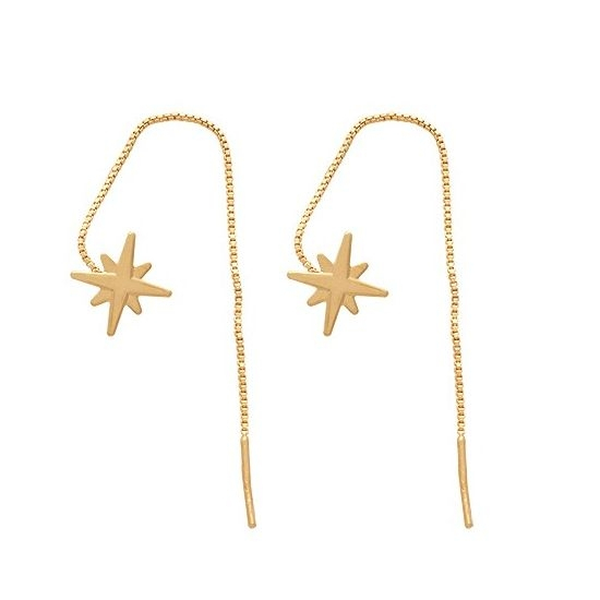 Cercei placati cu aur de 18 k, productie Brazilia , model steluta, lungime lant 7,5 cm, diametru model 1,4 cm