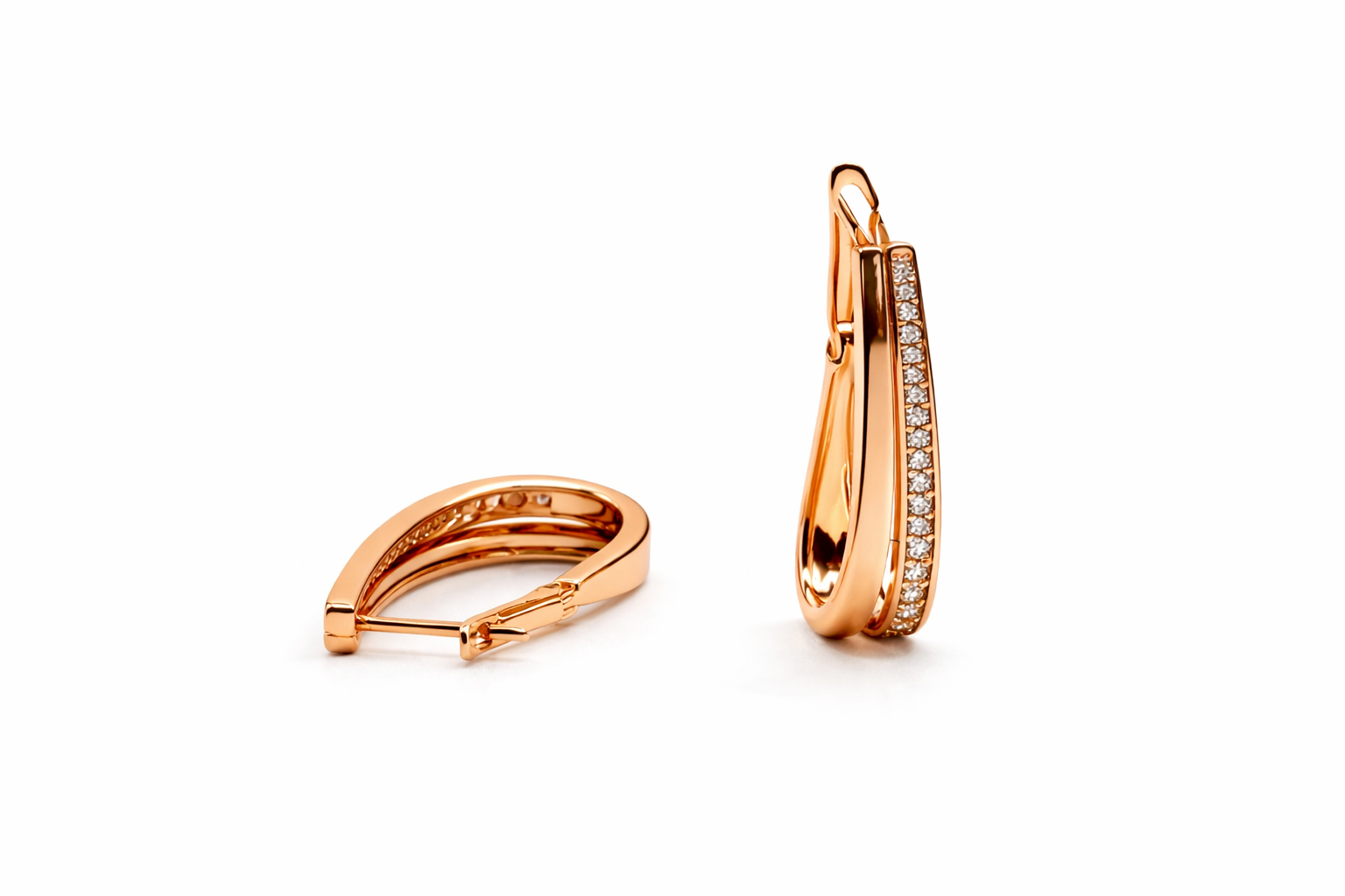 Cercei placați cu aur, tip cerc, cu design modern și detalii strălucitoare discrete. Un accesoriu elegant și versatil, perfect pentru a adăuga un plus de rafinament oricărei ținute.
