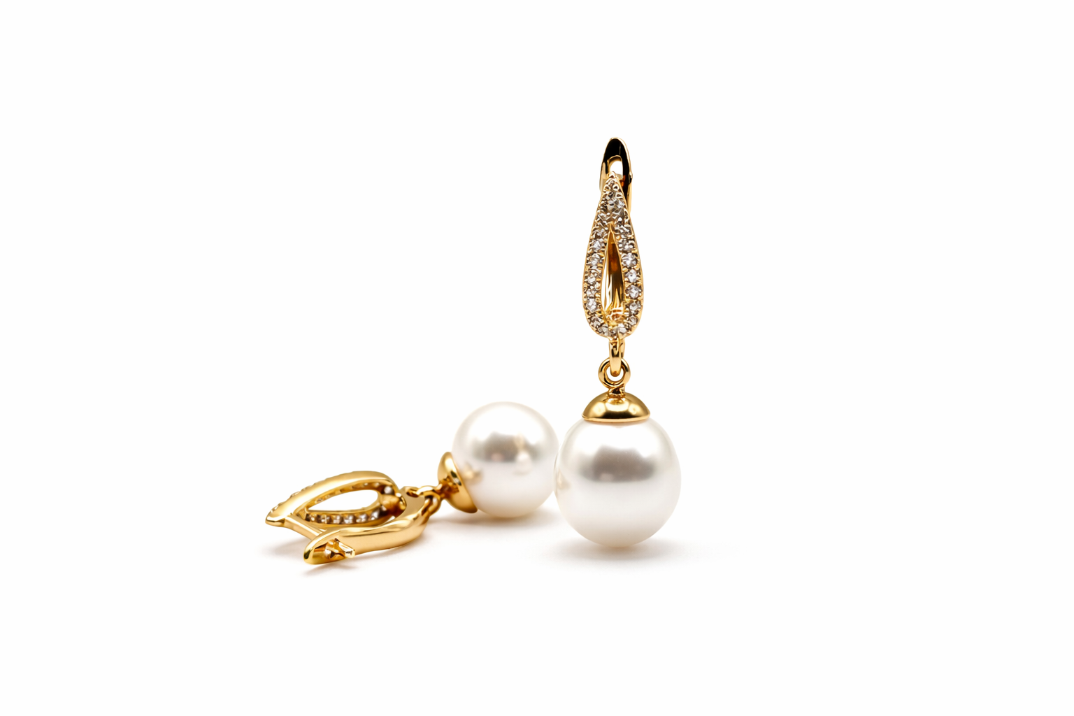 Cercei placați cu aur, cu design elegant și perlă albă, ideali pentru un look delicat și rafinat.