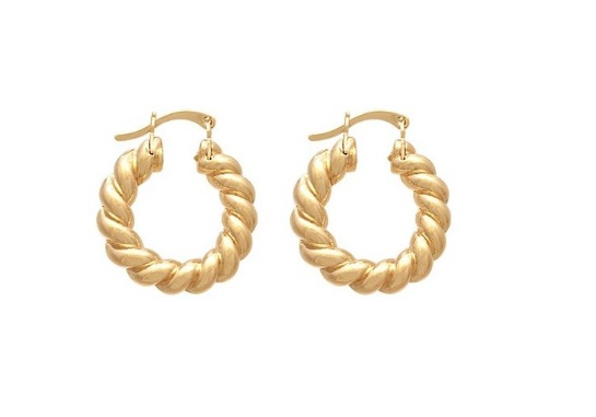 Cercei model creole rasucite placate cu aur de 18 k, latime 0.4 cm , diametru 2.5 cm