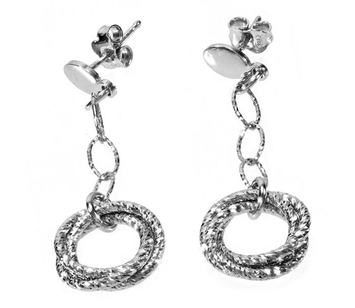 Cercei argint 925 rodiat, design italian, cu trei cerculete si inchidere cu fluturas. Greutate 4.3 g, lungime 4.3 cm