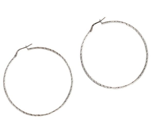 Cercei argint 925 rodiati, model creola rasucita. Greutate 3.6 g, latime 0.2 cm