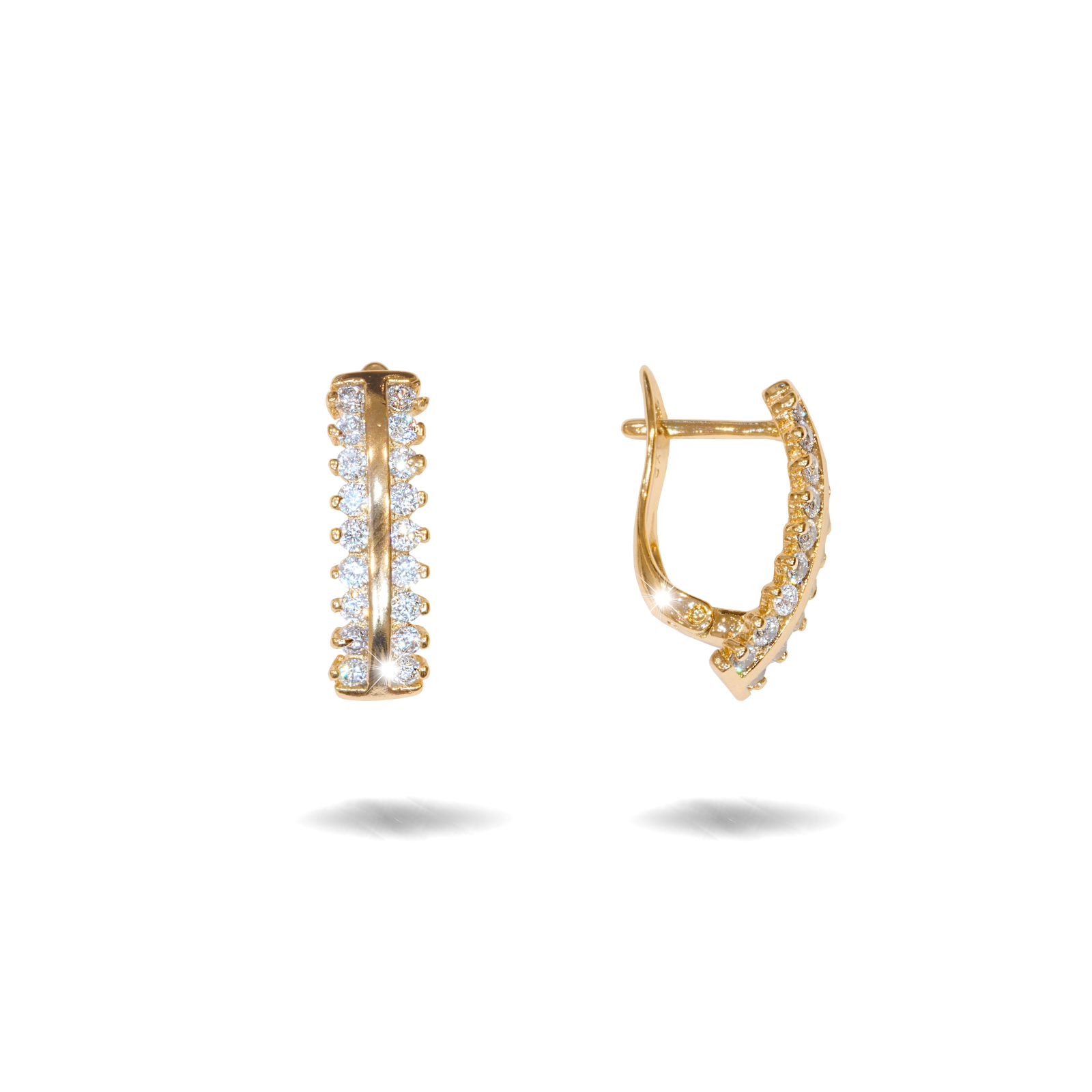 Cercei placati cu aur 18 k , 2 microni, cu pietre zirconia multifatetate , inchidere clasica, latime 0.5 cm , lungime 1.7 cm
