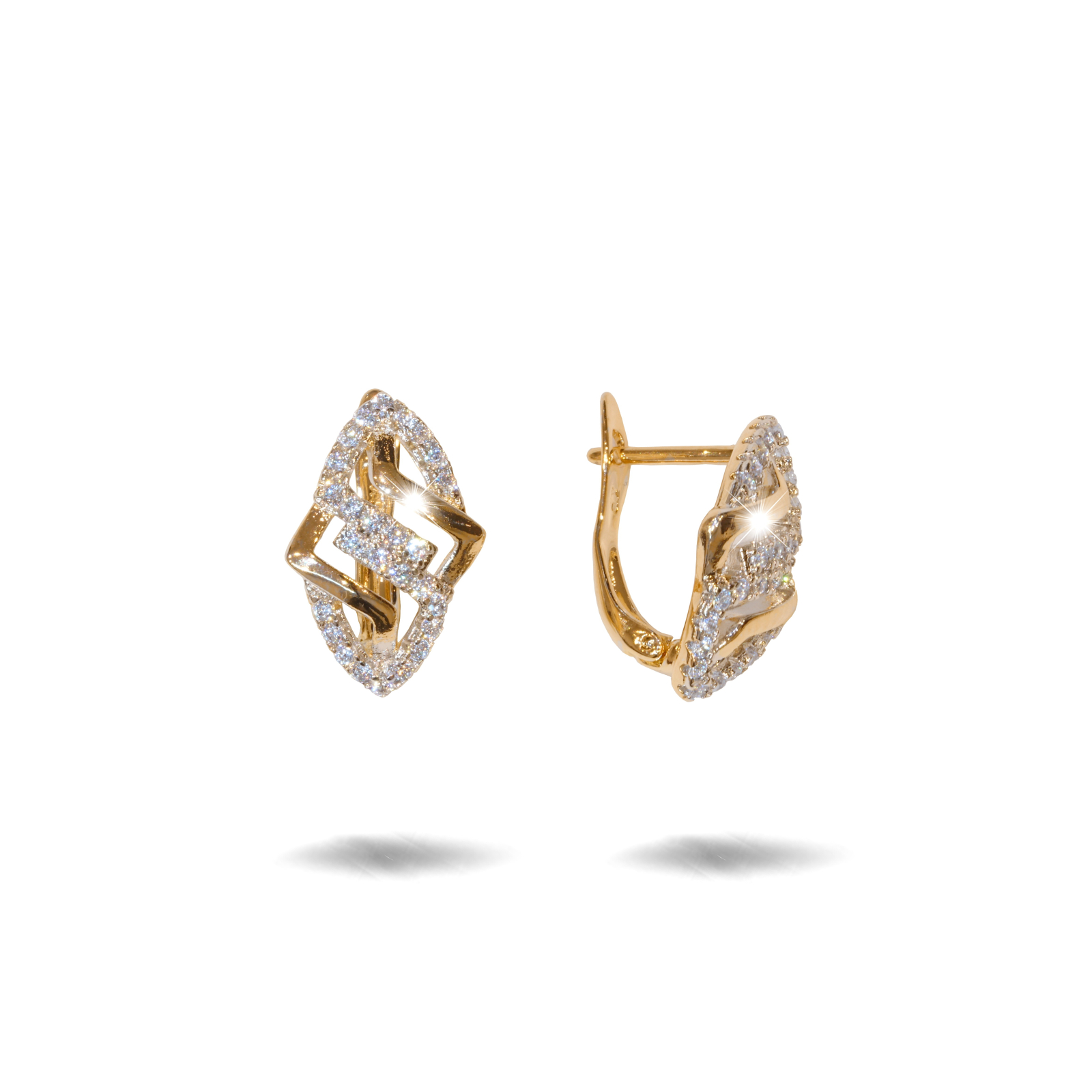 Cercei placati cu aur 18 K, cu pietre zirconia montura micropave , latime 1,2 cm , lungime 1,4 cm , inchidere clasica