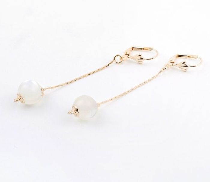 Cercei placati cu aur 18 k, microni. Pietre: margea. Culori: alb, lungime 7 cm
