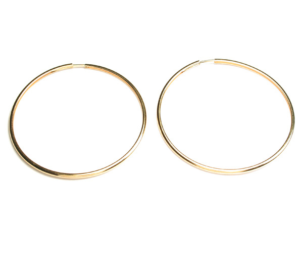 Cercei model creole placati cu aur de 18 k, 2 microni, productie Brazilia, diametru 3.5 cm