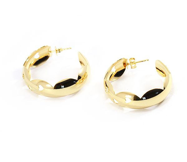 Cercei placati cu aur de 18 K, 2 microni, productie Brazilia, inchidere cu fluturas, latime 0.9 cm , diametru 3 cm