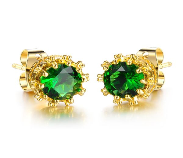 Cercei placati cu aur de 18k, 2 microni cu piatra zirconi verde, model cu surub, diametru 0.8 cm