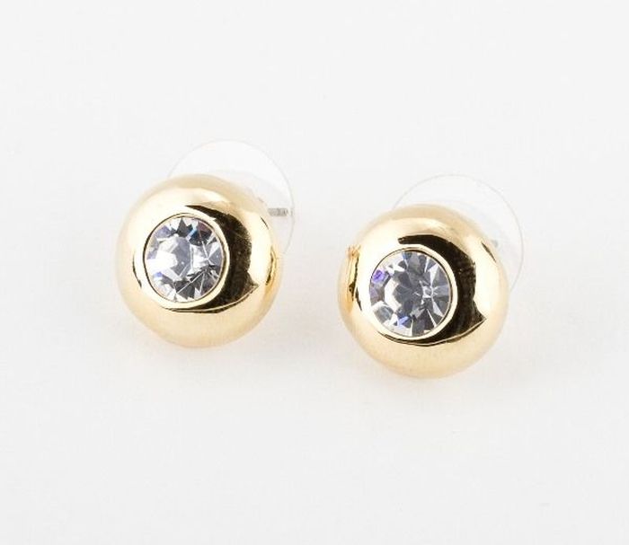 Cercei placati cu aur de 18 k, productie Brazilia. Pietre: zirconia. Culori: alb, diametru 0,6 cm