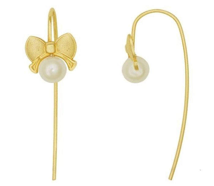 Cercei placati cu aur de 18k-2 microni, productie Brazilia, model fundita cu perla de 0, 5 cm (se trag prin ureche)