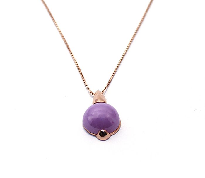 Colier argint rodiat 925 placat cu rodiu roz, design italian, cu pandant din quartz mov 1. 4 cm , (reduce stressul si frica). Greutate 9.5g , lungime 41 cm