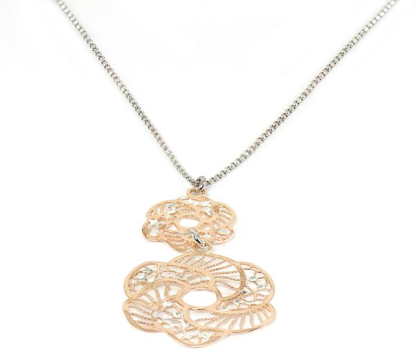 Colier argint 925 rodiat, design italian cu doua medalioane argint placat cu rodiu roz , greutate 4,5 g , lungime 44 cm.