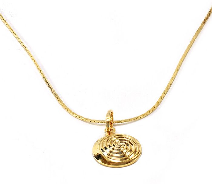 Lant placat cu aur de 18k, 2 microni, lungime 45 cm,pandant 1.1 cm, model fir, productie Brazilia, cu un banut cu model circular