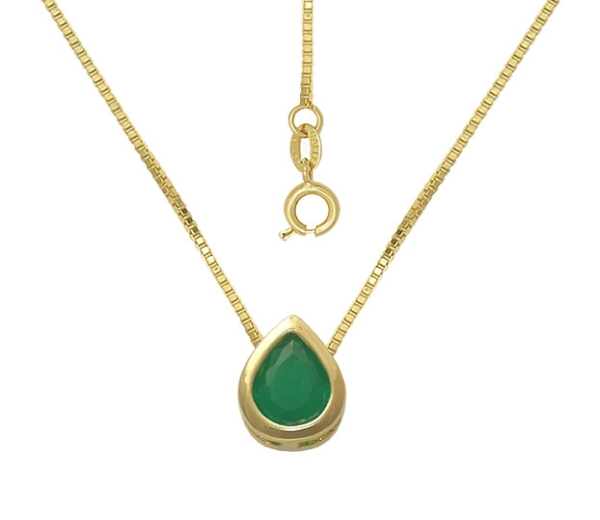 Colier placat cu aur de 18k, , 2 microni, lungime 44 cm, productie Brazilia format din lant si pandantiv , model lacrima cu o piatra -quartz verde smarald