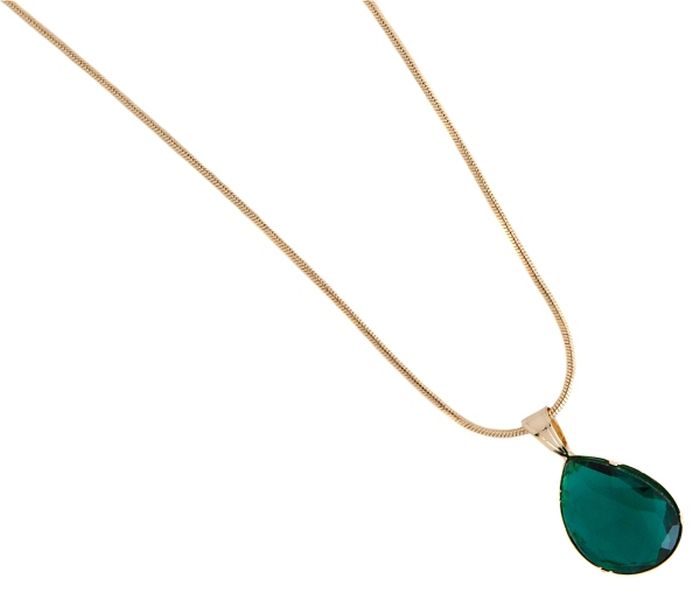 Colier placat cu aur de 18 k, 2 microni, lungime 42 cm cu extensie 4 cm, productie de lux Brazilia, cu o un cristal verde, imitatie turmalina dimensiuni : 2 cm /1. 3 cm