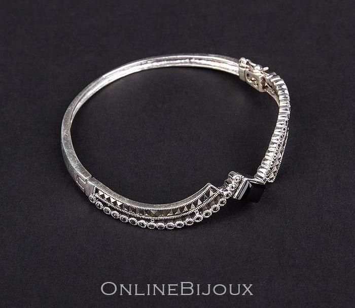 Bratara fixa, argint 925 rodiat. Colectia Milano. Pietre: marcasite, onix. Culori: antracit, negru.