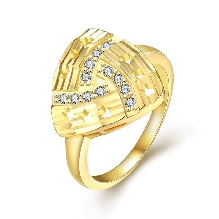 Inel placat cu aur de 18 K, cu pietre zirconia multifatetate, latime 1,6 cm, marime 58