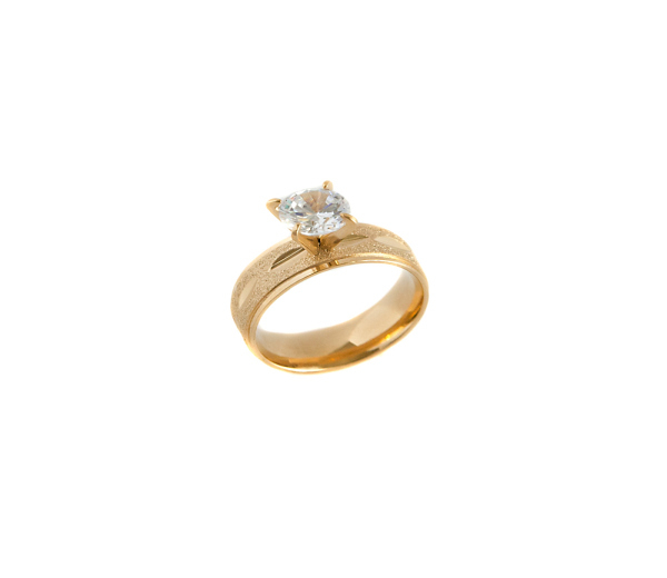 Inel placat cu aur de 18k, 2 microni cu o piatra zirconia alba de 0. 6 cm.Latime 0,6 cm