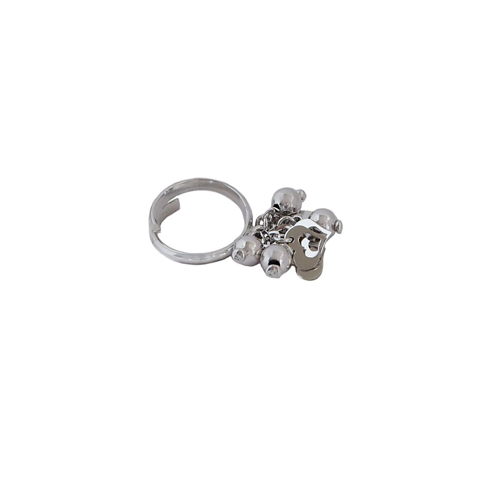 Inel argint 925, rodiat, model cu bilute si inimioare mobile, greutate 5 g, marime reglabila