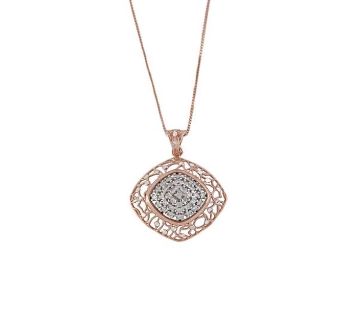 Colier argint 925, placat cu rodiu roz, design italian, cu un pandant in forma de romb, cu pietre zirconia albe.greutate 7 g, lungime 50 + 4 cm