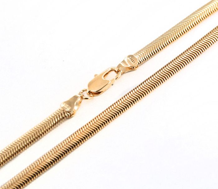 Lant placat cu aur de 18 k, 2 microni, lungime 45 cm, latime 0.4 cm, productie Brazilia.