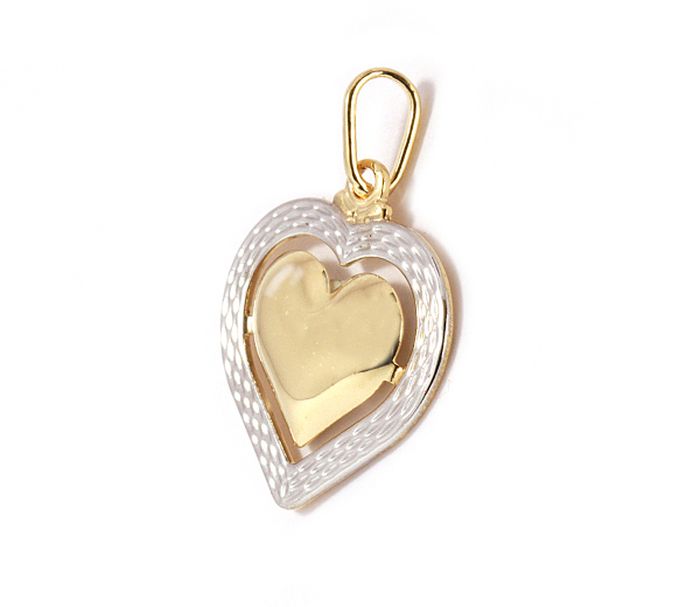 pandantiv placat cu aur alb si galben de 18 K, lungime 2.5 cm, latime 1.8 cm, productie Brazilia, model inimioara