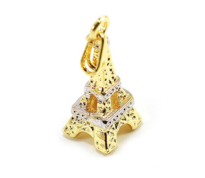 pandantiv placat cu aur alb si galben, 18k, 2 microni, lungime 2.5 cm, latime 0.7 cm, productie Brazilia, model turnul Eiffel