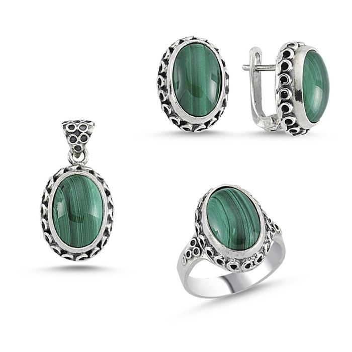 Set argint 925, stil otoman , cu pietre naturale malachite - 7422O5185