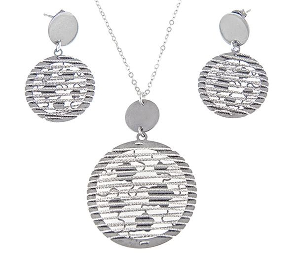 Set argint 925 rodiat. Colectia Milano, design italian, format din: colier, cercei. Culori: antracit, lungime colier 42 cm , diametru pandant 3,5 cm , diametru cercei 2,5 cm