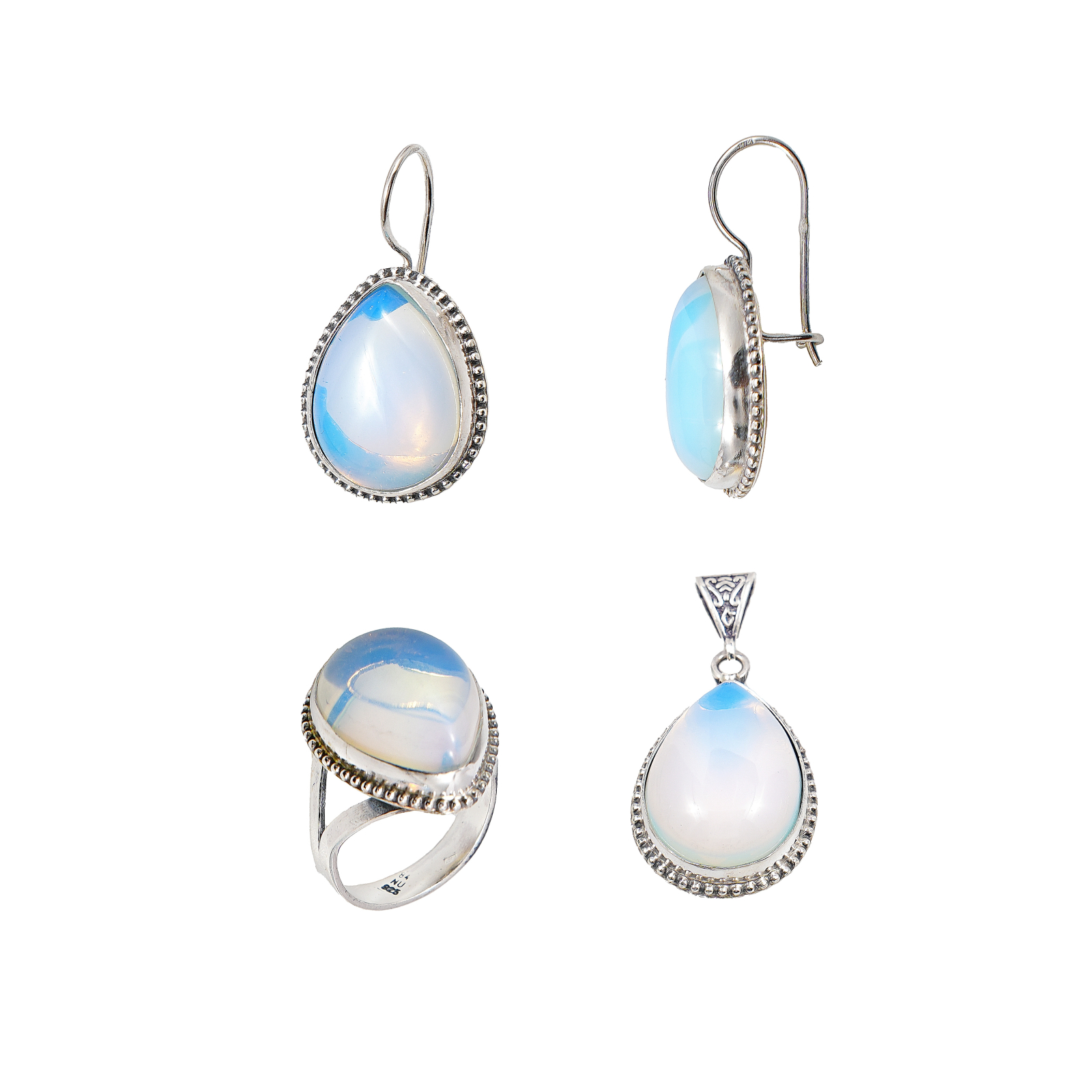 Set argint 925 cu piatra lunii, inel :marime : 56/59 ; L -2.5 cm, l -1.8 cm ; pandant : L -3,5 cm ; l -1.8 cm ; cercei : L -2.9 cm ; l -1.8 cm ; gr.22.48