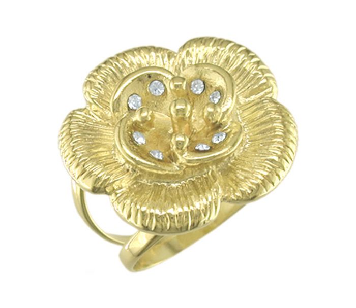 Inel placat cu aur 18 k,2 microni, model floare. Pietre: zirconia. Culori: alb. Diamatru 2 cm